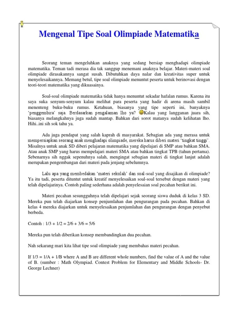 Soal Olimpiade Matematika Smp Bab Bilangan : Olimpiade Matematika Tingkat Sekolah Dasar Untuk Dapat Menyelesaikan Soal Soal Olimpiade Matematika - Misalkan n n adalah suatu bilangan bulat positif.